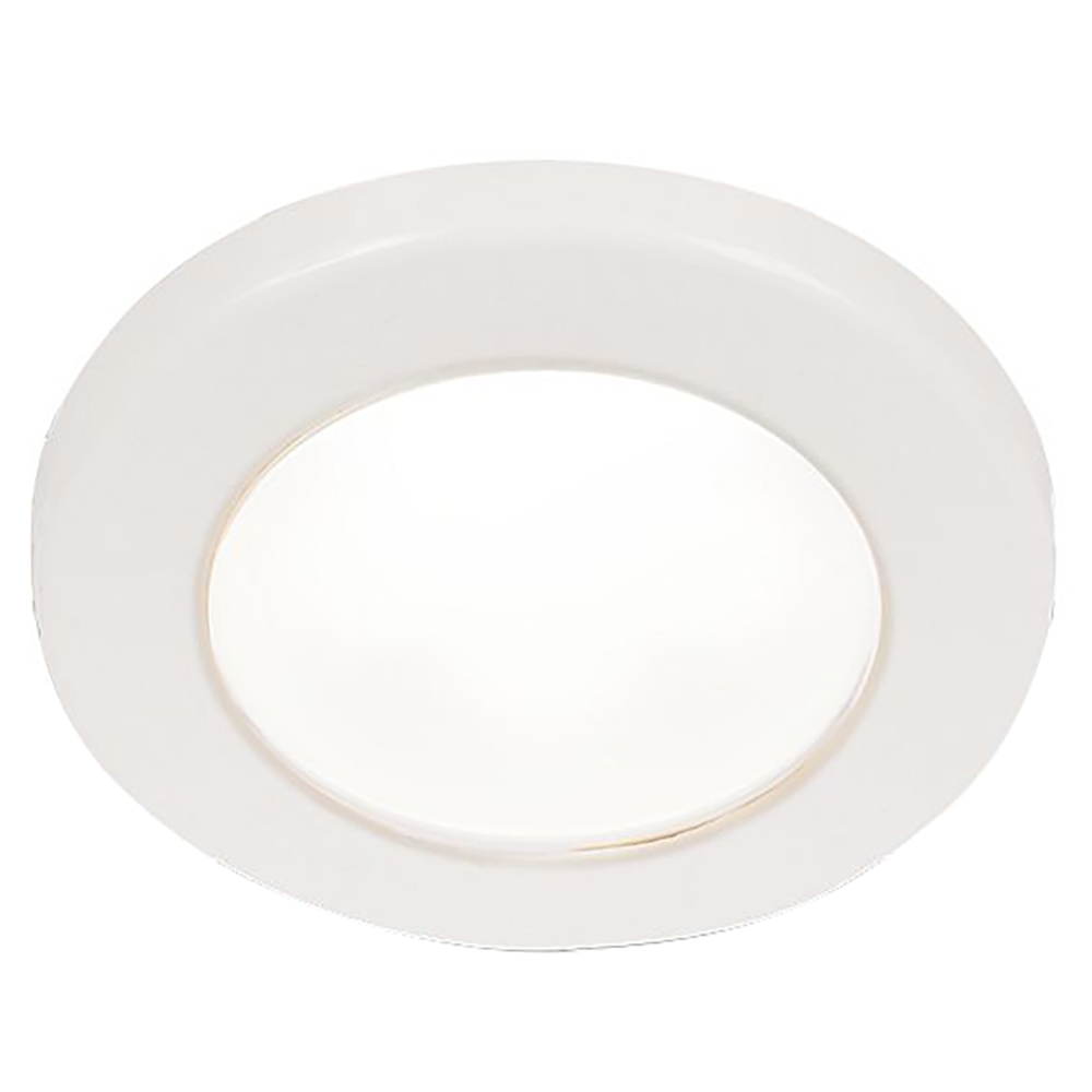 EuroLED 75 3″ Round Screw Mount Down Light – White LED – White Plastic Rim – 12V