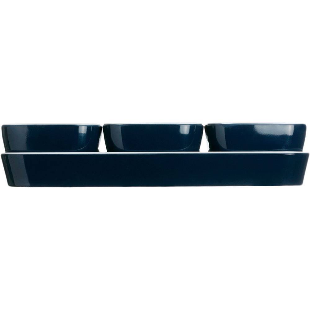 The practical NORTHWIND snacks set comes with 4 pieces (a tray and three bowls) and is perfect for aperitifs on board. With its exquisite design on the inside, all the pieces are manufactured in unbreakable two-tone melamine in white and blue.